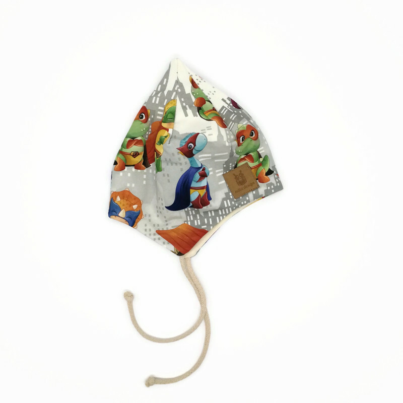 A sapi alapanyaga kívül pamut futter (95% pamut, 5% elasztán) belül a bélése pamut jersey (95% pamut, 5% elasztán), a füecskéket is megfelelően védi a hideg idő ellen. Pamut zsinór megkötővel rendelkezik.